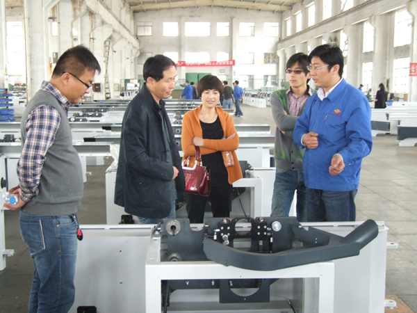 為了更好的展示工友產(chǎn)品,公司對原有的產(chǎn)品展示大廳進(jìn)行了改造。新的展示大廳不僅按照產(chǎn)品類型劃分展示區(qū)域,還專門設(shè)立了精品區(qū),擺放目前最新的拳頭產(chǎn)品,以便于客戶更加直觀的了解產(chǎn)品。與會經(jīng)銷商首先參觀了產(chǎn)品展示大廳,重點駐足在精品展示區(qū),調(diào)試人員現(xiàn)場演示設(shè)備,技術(shù)研發(fā)人員現(xiàn)場為客戶講解新產(chǎn)品的功能特點、性能參數(shù)、產(chǎn)品的主要優(yōu)勢、賣點等。經(jīng)銷商們認(rèn)真傾聽并不時提出疑問,研發(fā)人員、質(zhì)檢、銷售業(yè)務(wù)等人員耐心解釋。在參觀展示廳之后,經(jīng)銷商們在木機(jī)事業(yè)部經(jīng)理董品洲的陪同下,參觀了部分生產(chǎn)車間,讓經(jīng)銷商們近距離的了解產(chǎn)品的生產(chǎn)過程,感受工友精益求精的制作理念。
