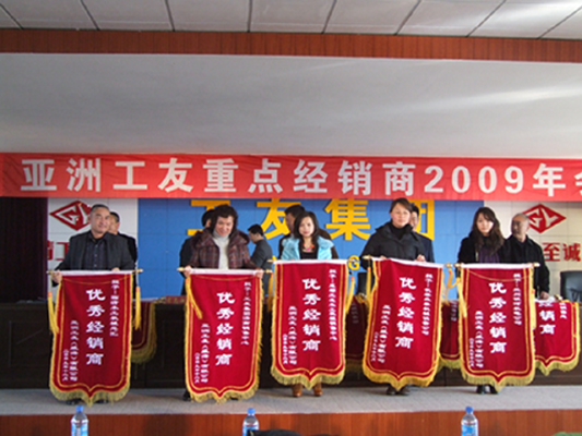 最后董事長董延偉做了題為《務(wù)實(shí)求新 和諧共贏 蓄勢待發(fā)》的報(bào)告。會(huì)上董事長首先對各位經(jīng)銷商的到來表示歡迎,一年來公司在廣大經(jīng)銷商的支持努力下,戰(zhàn)勝金融危機(jī),取得了可喜的經(jīng)濟(jì)效益。公司能夠戰(zhàn)勝前所未有的金融危機(jī),廣大經(jīng)銷商功不可沒,董事長對廣大經(jīng)銷商盡心盡力開拓市場表示感謝。他說,今天我們廠商歡聚一堂,就是要共商工友集團(tuán)發(fā)展大計(jì),探討如何在一個(gè)新的歷史起點(diǎn)上,團(tuán)結(jié)和動(dòng)員各位合作伙伴,發(fā)揚(yáng)務(wù)實(shí)求新的精神,不斷開拓進(jìn)取,合力開創(chuàng)工友各項(xiàng)事業(yè)的嶄新局面。董事長簡要的回顧了公司一年來工作所取得的成績。這一年里,公司緊扣市場的脈搏,進(jìn)行了企業(yè)內(nèi)部大調(diào)整,增強(qiáng)內(nèi)功。在企業(yè)管理、技術(shù)研發(fā)、降本降耗、改進(jìn)工藝提高產(chǎn)品品質(zhì)、鞏固并拓展?fàn)I銷網(wǎng)絡(luò)等方面下足了功夫,使公司在克服金融危機(jī)帶來不利影響的同時(shí)增強(qiáng)了實(shí)力。會(huì)上,董事長重點(diǎn)談了明年公司各項(xiàng)工作的規(guī)劃并對經(jīng)銷商提出了三項(xiàng)要求。他說:“我們廠商精誠團(tuán)結(jié)戰(zhàn)勝了金融危機(jī),國內(nèi)市場取得了不菲的成績。今后廣大經(jīng)銷商要隨時(shí)掌握市場的信息,不斷調(diào)整營銷策略,擴(kuò)大經(jīng)銷規(guī)模,把工友產(chǎn)品及時(shí)推向市場,為廣大用戶提供滿意的服務(wù),實(shí)現(xiàn)廠商共贏?!彼Mㄟ^經(jīng)銷商大會(huì)來表達(dá)公司最真摯的感激之情,從而回報(bào)與公司唇齒相依的經(jīng)銷商們,并熱切的希望創(chuàng)建一個(gè)友善、和諧的溝通交流平臺,為工友集團(tuán)在未來的市場表現(xiàn)中更加出色,希望經(jīng)銷商廣泛提意見,公司會(huì)廣納善言,改善不足。